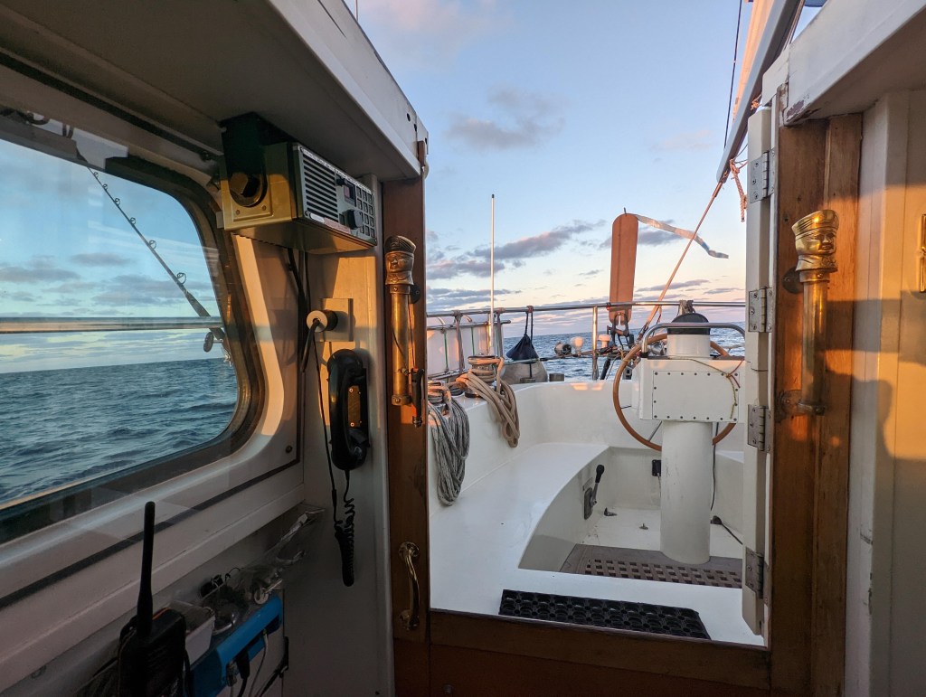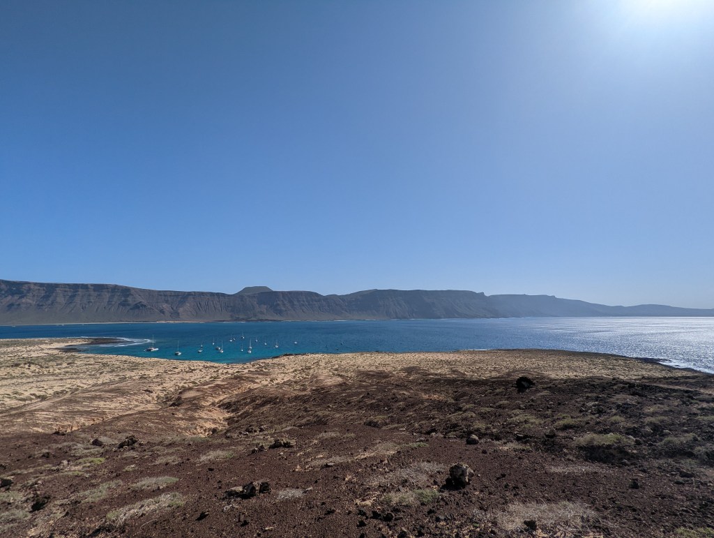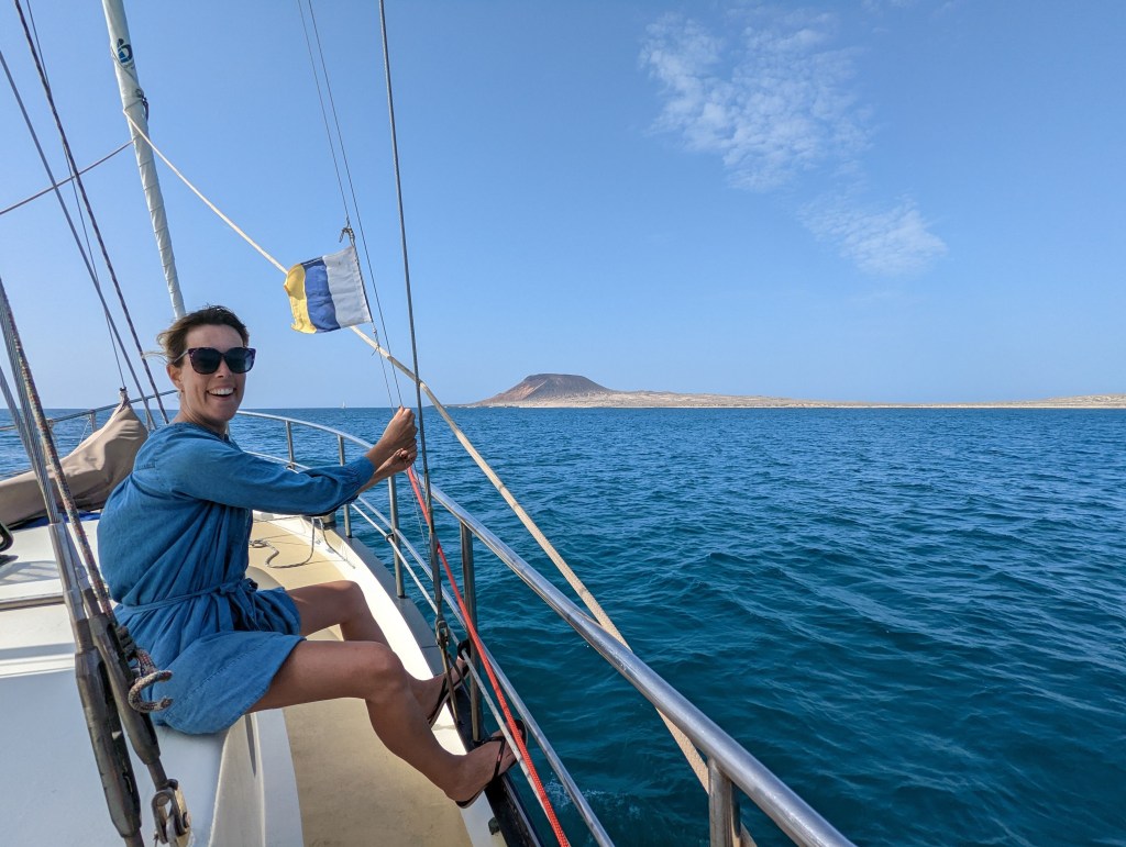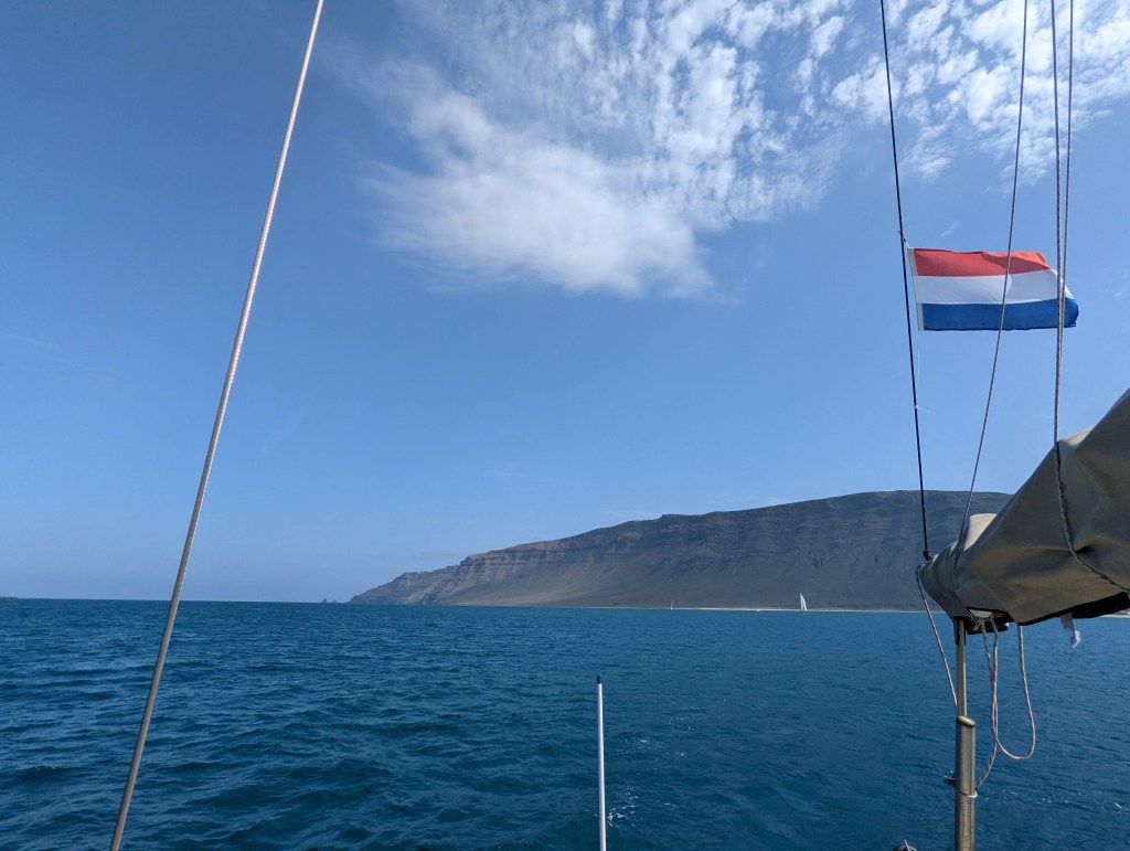 We doen er zeven en een halve dag over om van Ayamonte naar Isla Graciosa te varen. In plaats van twee windstille dagen hadden we er wel vier. Dat betekende dat we veel hebben moeten motoren en zelfs een nacht hebben gedobberd met de zeilen neer. Helemaal geen voortgang maken, vind ik toch wel frustrerender dan ik had gedacht. We zijn dan ook heel blij als we een beetje wind hebben en wel twee knopen vooruit gaan!