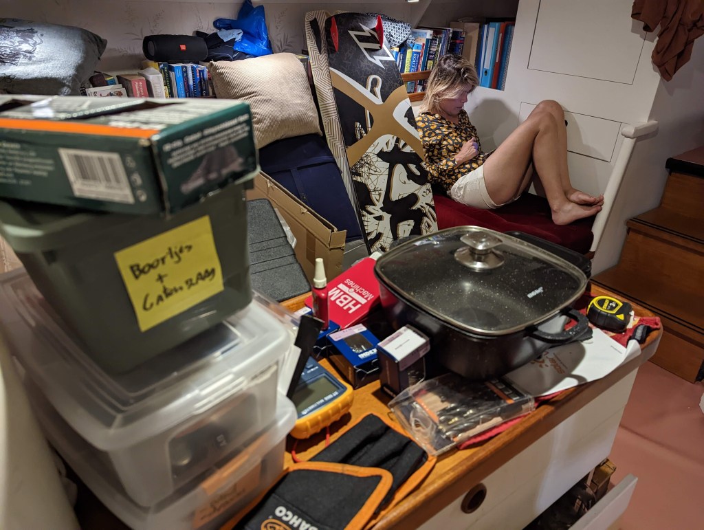 Nu kan het klussen gaan beginnen! In de ankerbaai installeren we vier nieuwe zonnepanelen aan de reling. Jouke heeft de klus van tevoren van voor tot achter uitgedacht en alle benodigde spullen hebben we al maanden in huis en vervolgens aan boord. Na zeven volle dagen zagen, solderen, gaten boren en draden doortrekken zitten de panelen erop. Vlak voordat we ze aansluiten kijk ik hoeveel stroom er binnenkomt: 2 ampère. En yes! Een seconde later komt er elf ampère binnen. Vanaf nu hebben we voldoende stroom, zelfs voor windstille vaartochten wanneer we de stuurautomaat moeten gebruiken.