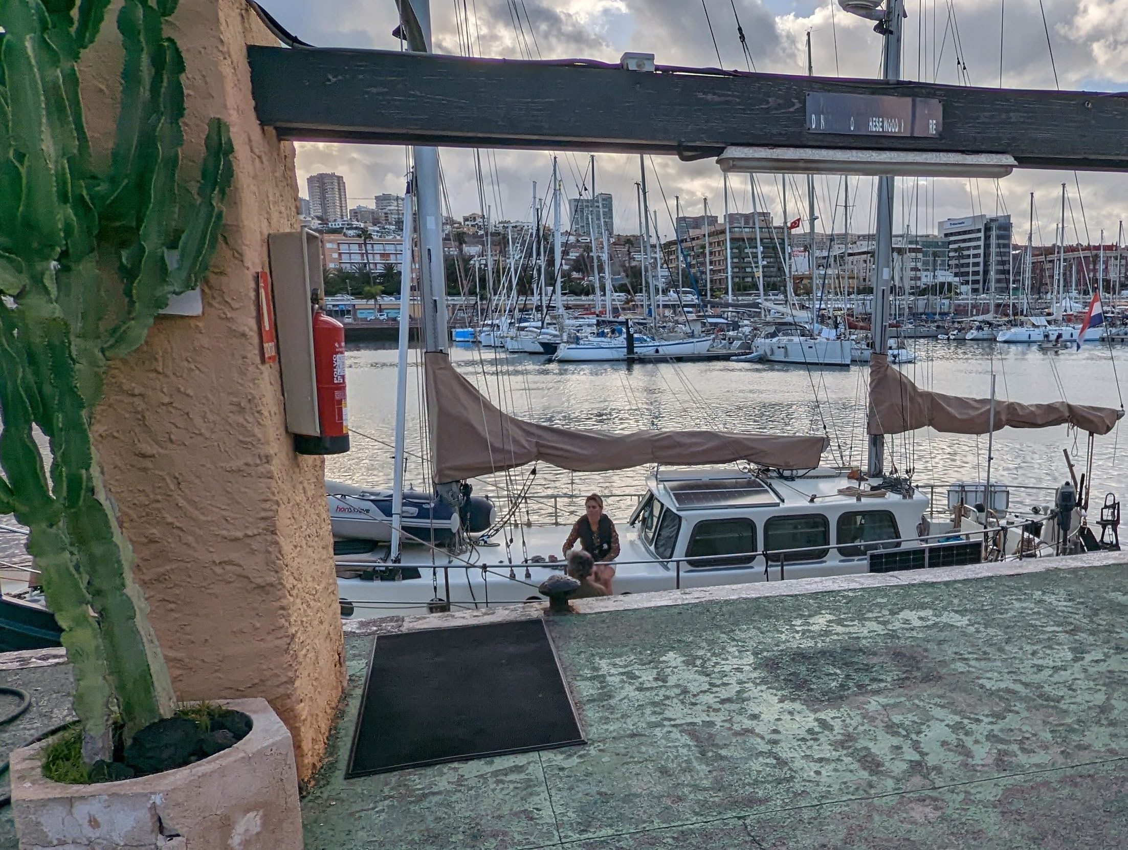 Na een volle week ankeren bij Isla Graciosa varen we, dit keer met veel te veel wind, naar Las Palmas. Las Palmas is de hoofdstad van Gran Canaria. Voor ons een nieuwe bestemming. Er is zo veel wind dat we alleen met de genua omhoog meer dan genoeg vaart hebben. Het is een onstuimige tocht van een etmaal. Wanneer ik mag slapen, schrik ik wakker van een bak water in mijn gezicht. Een grote golf heeft via het slaapkamerraam zijn weg naar mijn bed gevonden. Ik lig in een enorme plas zeewater. Ik kijk nu nog meer uit naar het einde van deze tocht, dan kunnen we het matras uitspoelen en onze andere slaapkamer klaarmaken voor de komende dagen.