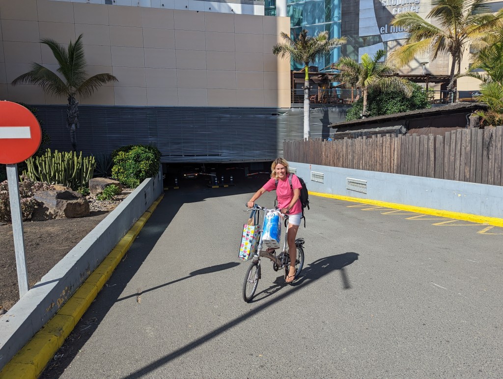 In de hoofdstad van Gran Canaria zitten de beste watersportwinkels van de Canarische eilanden. Drie dagen lang fietsen we de hele stad door op onze vouwfietsen om een soldeerbout, snorkelsets, nieuwe vallen en onder andere een gaf te halen. Een gaf is een grote haak om een gevangen vis mee aan boord te trekken.