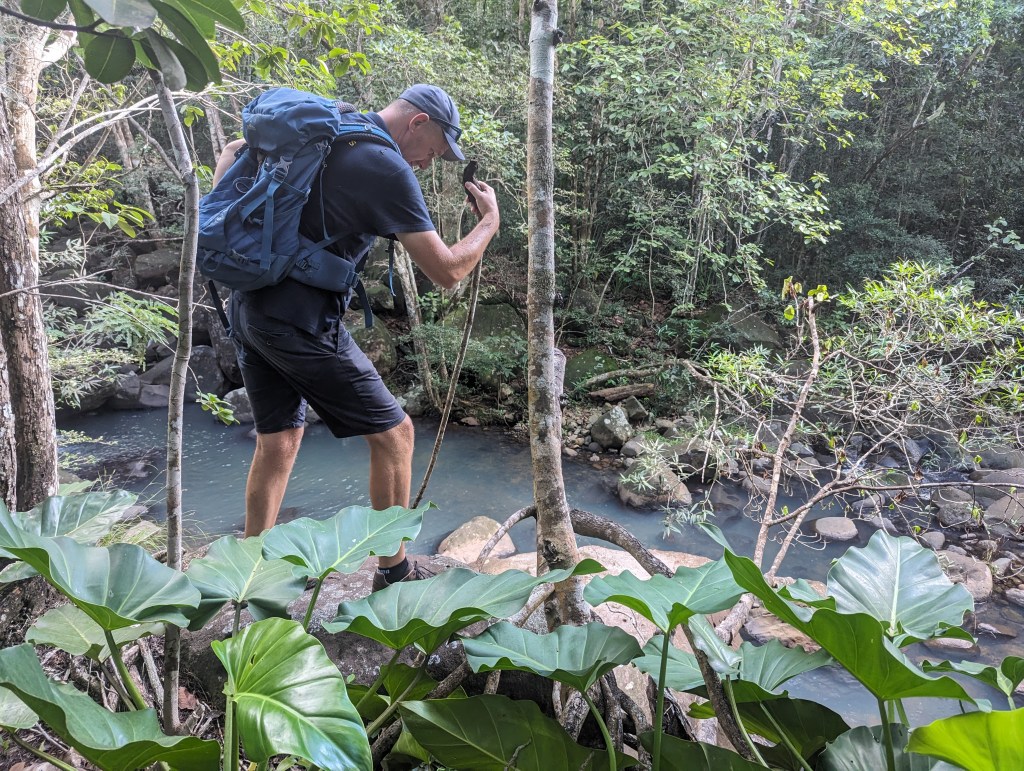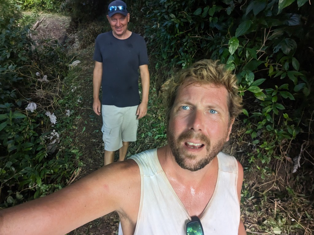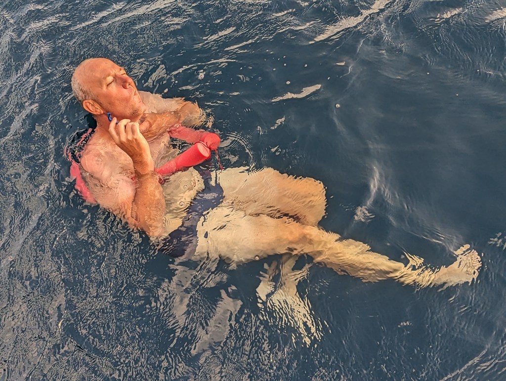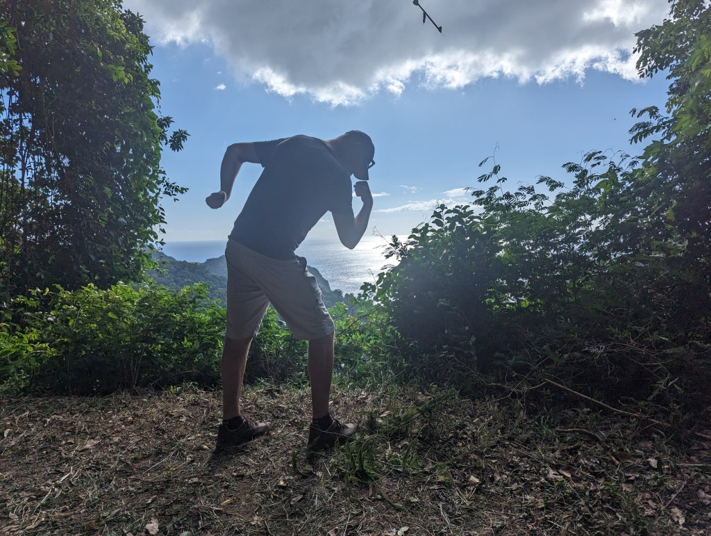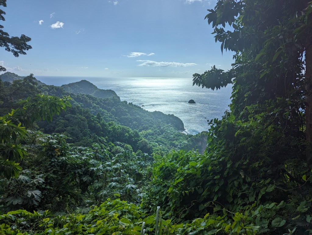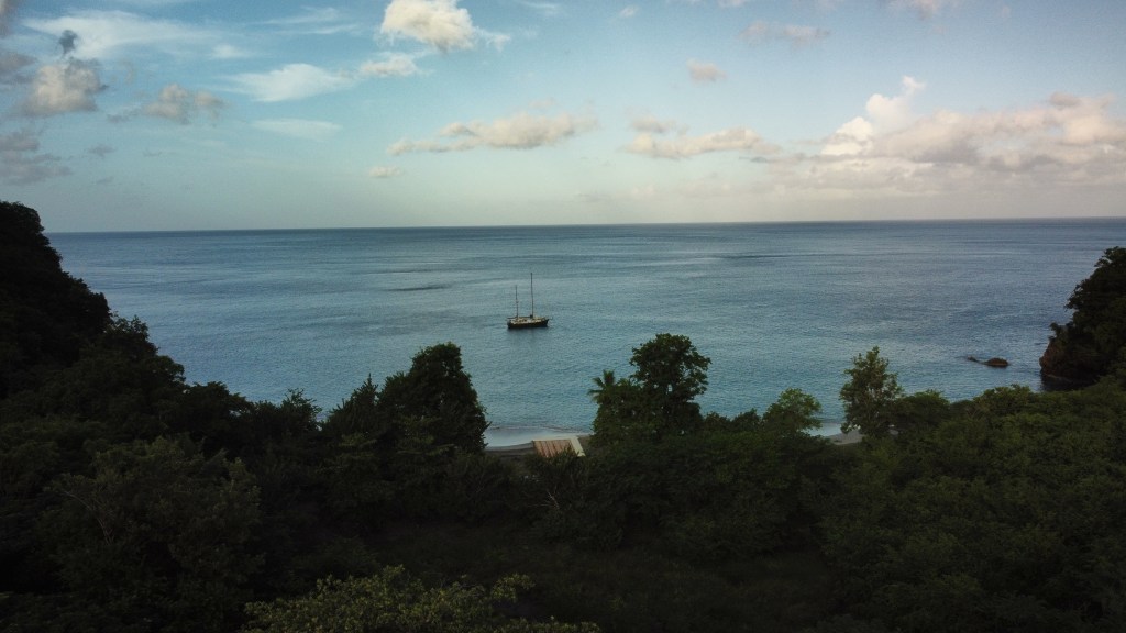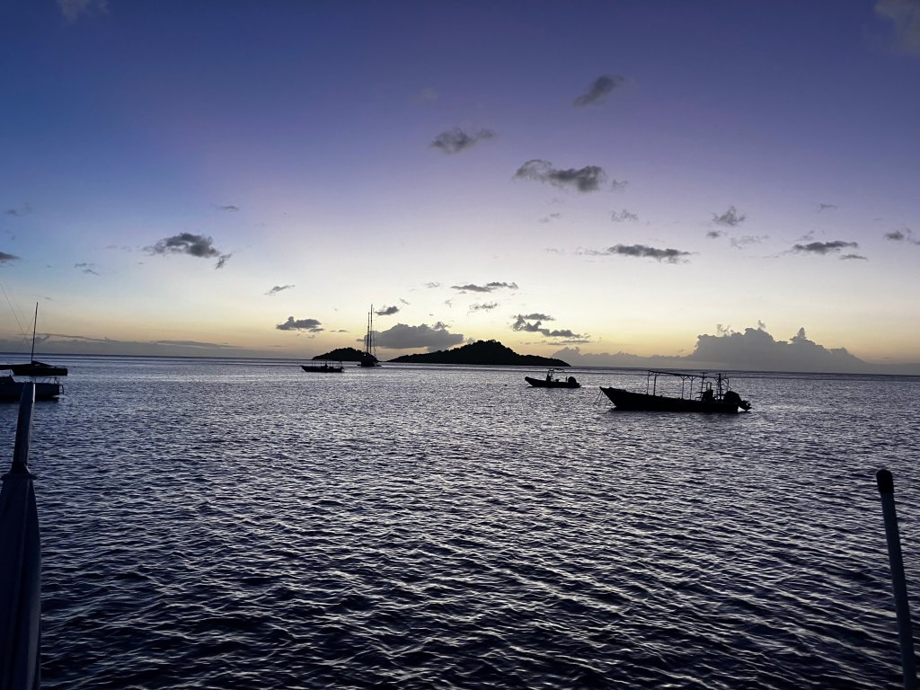 Doordat we aan de oostkant van Dominica varen, zijn we in rustiger vaarwater terecht gekomen. Jouke en Pleuni gaan even liggen, ik houd de wacht. Opeens hoor ik spettergeluiden en zie ik een donkere schim langs de boot zwemmen. Ja hoor: dolfijnen. Ik roep het uit van enthousiasme en probeer mijn telefoon zo snel mogelijk op de camerastand te zetten. Ik had mijn kinderen beloofd zoveel mogelijk van de natuur vast te leggen en deze gauw door te sturen. De overige bemanning laat mij weten dat ze alleen komen kijken als er een walvis te zien is…..