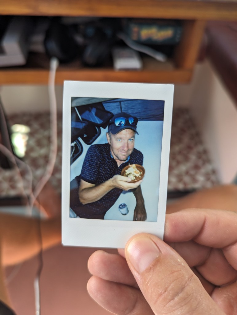 Bij poging 37 kijken we niet meer zo nauw naar het formaat kreeft. Jouke schiet de grootste die we konden vinden met de teruggevonden speargun. Pleuni ontfermt zich over de vangst en na enkele minuten koken en hierna bakken in boter gaan we er aan geloven. Als of er een engeltje op je tong piest. Onder het genot van een biertje/wijntje en een ondergaande zon in een prachtige baai voelt dit als een mooi einde van mijn avontuur.