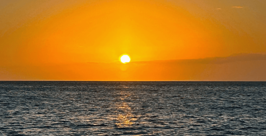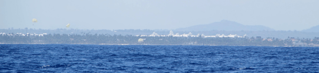Bij Punta Cana zijn we pas zo’n beetje op de helft. Een paar uur later krijgen we de wind wat meer van achteren. Het wordt een warme dag en er gaat veel zonnebrand doorheen. Het is een heerlijke zeildag. We praten veel. We lunchen lekker. We kijken constant om ons heen of we ook walvissen zien.