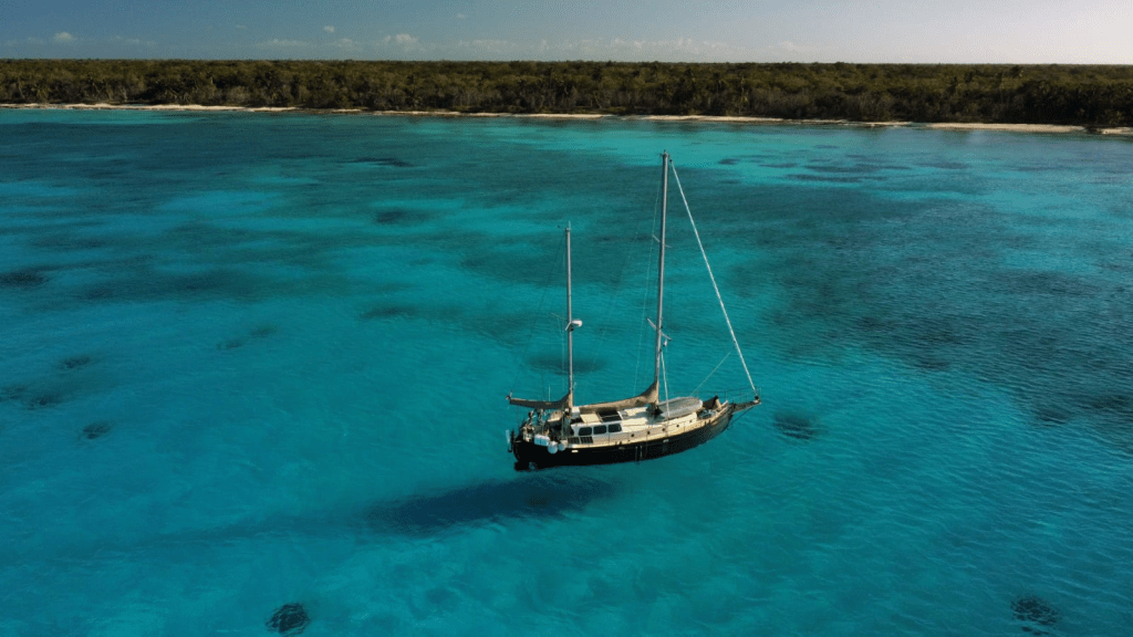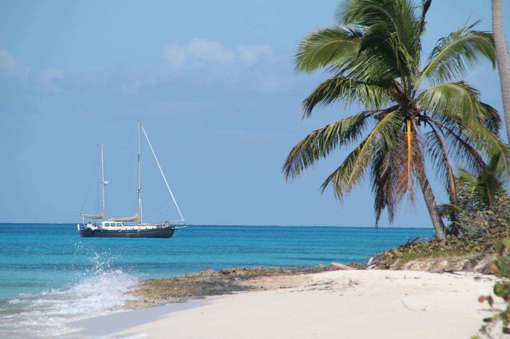 De Olim voor anker onder Isla Saona