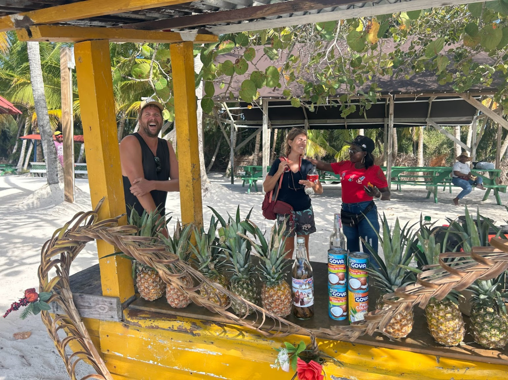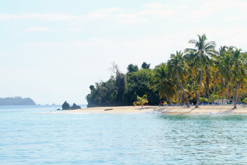 Na de walvisshow komen we aan bij Cayo Leventado. Een klein eilandje aan het begin van de baai onder het schiereiland Samaná. Ook dit eiland is bekend vanwege een iconische reclame. Het wordt Bacardi Island genoemd vanwege deze commercial uit de jaren tachtig.
