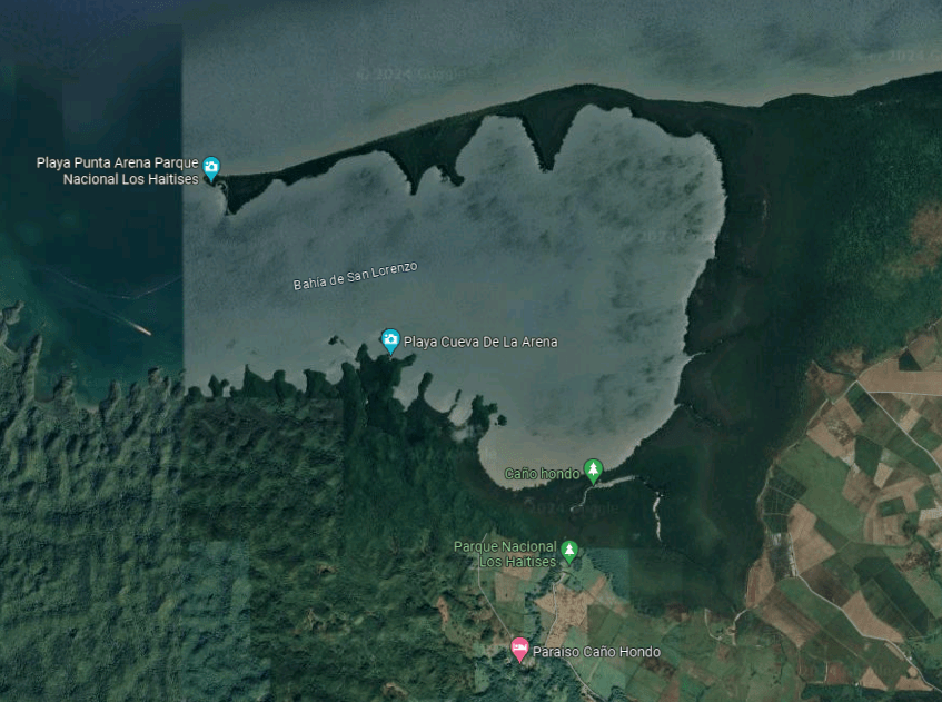 Bahia de San Lorenzo, Nationaal Park Lost Haitises, het riviertje Rio Caño Hondo en het resort Paraíso Caño Hondo