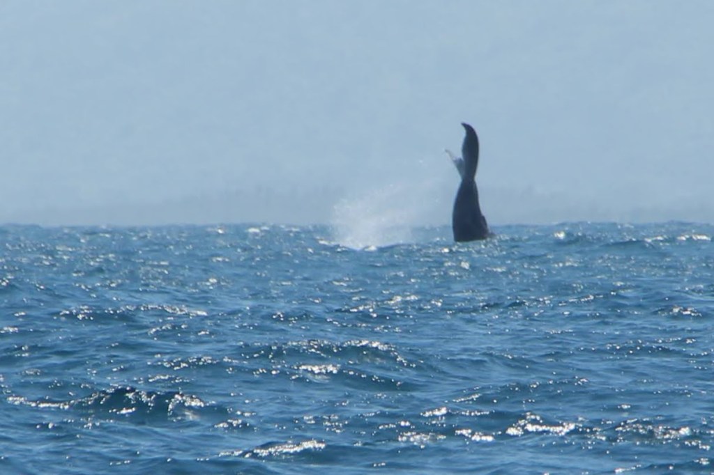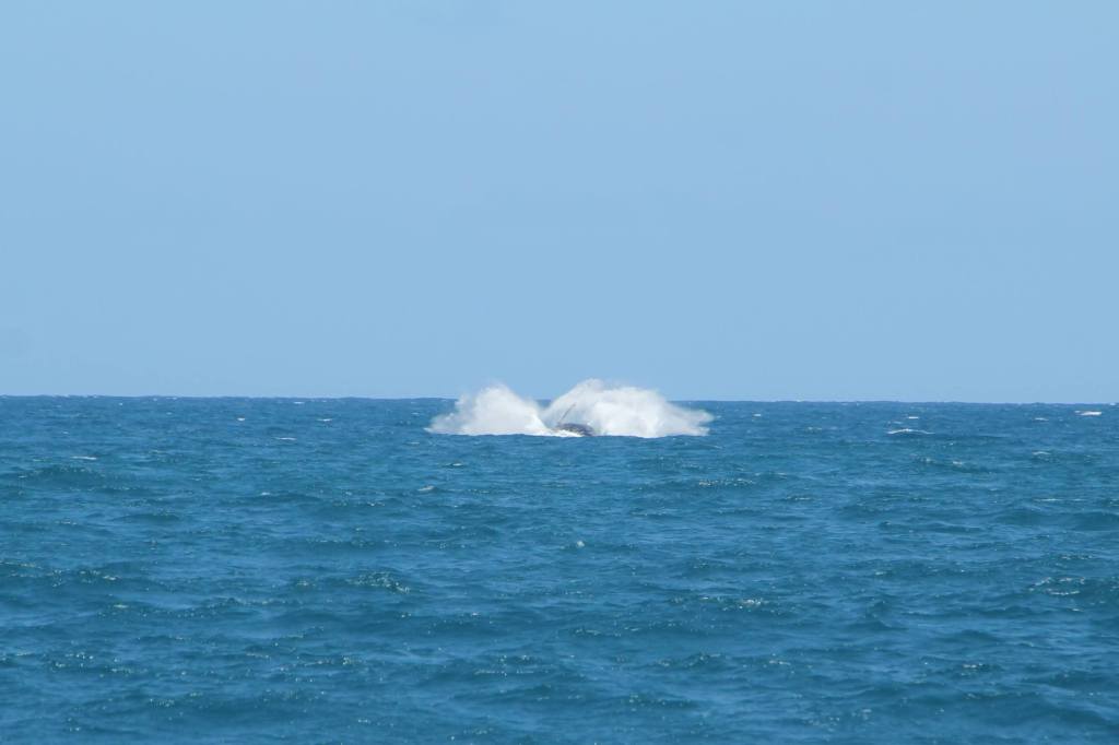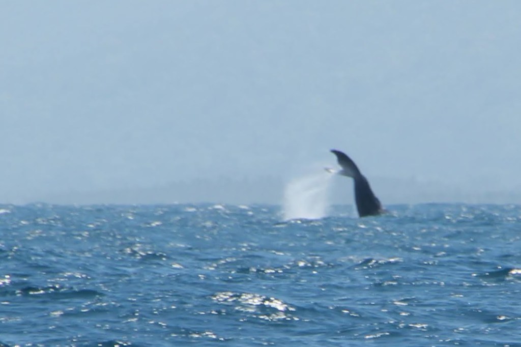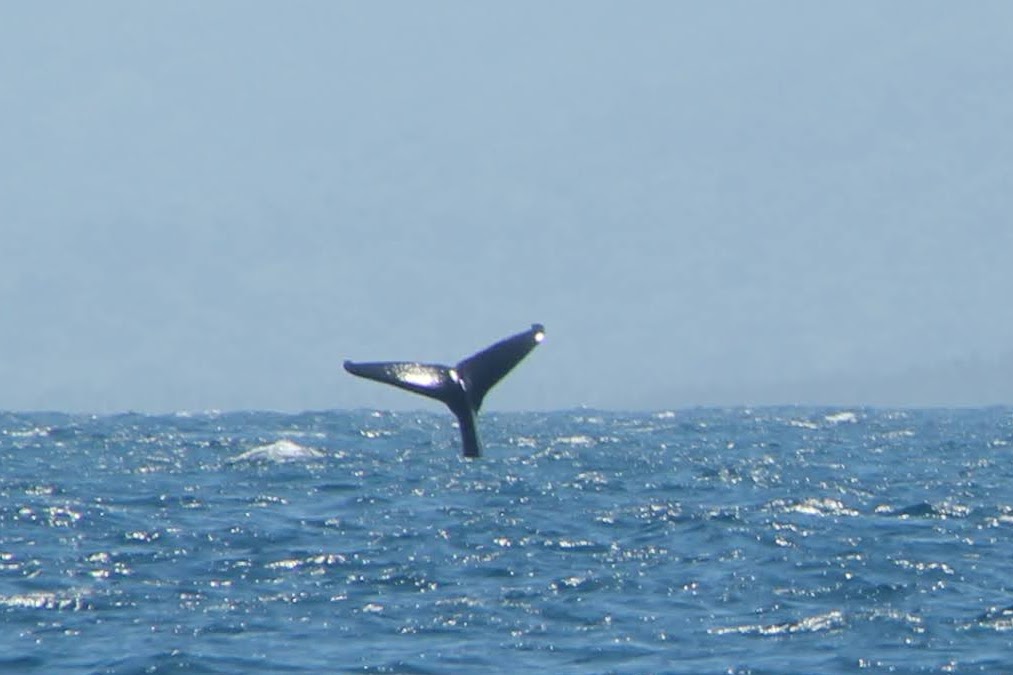 Tot nu toe heeft vandaag alleen Jouke er eentje gezien. Niet alleen een staart, maar een hele Bultrug die uit het water sprong. Het was ver weg, en Pleuni ik waren net te laat. We geloven Jouke wel, maar zijn ook jaloers. Hopelijk krijgen we later nog een kans.