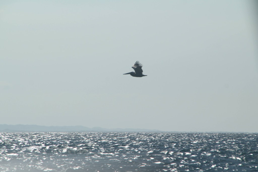 Het is een prachtige tocht. De hele route is bezeild, en op mijn eerste dag kan ik al meteen een aantal nieuwe diersoorten van mijn lijst afvinken. Ik zie onder andere een school vliegende vissen langs de boot wegvliegen. Een fregatvogel is zo druk een Brown Booby (Bruine gent) zijn prooi afhandig te maken dat hij niet ziet dat we bijna over ze heen varen. Ik had beide vogelsoorten nog nooit met eigen ogen gezien.