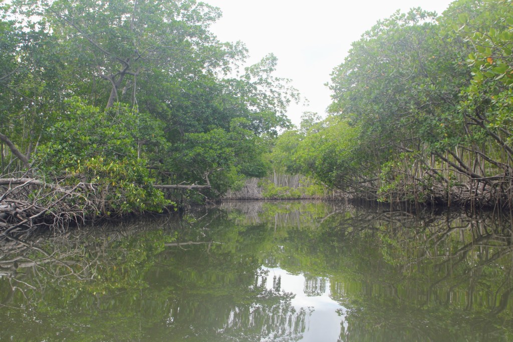 Het riviertje is fantastisch. De mangrovebossen stinken niet eens zo erg, maar zitten vol met mij onbekende soorten reigers en kingfishers.