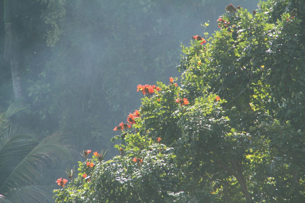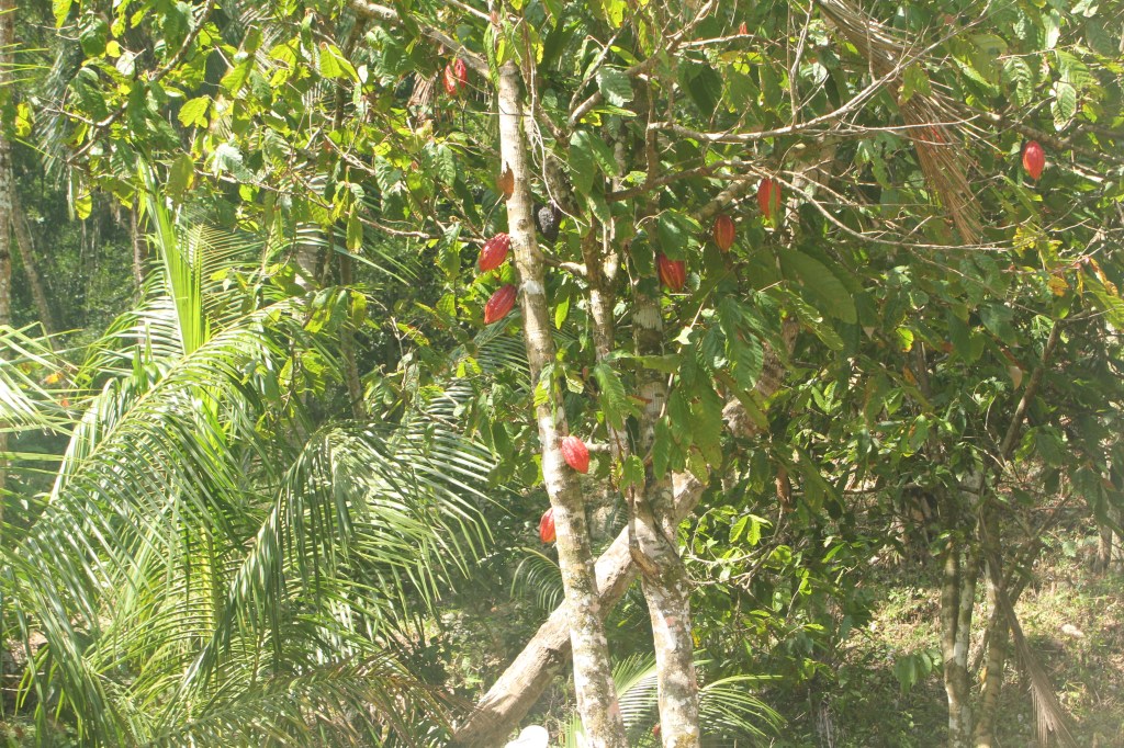 Bij het wandelen door de bossen komen we twee oude mannetjes tegen. Ze hebben een kleine business samen. Ze lopen met grote zakken door het bos en verzamelen de rijpe kokosnoten. Daarvoor moeten ze ook de bomen inklimmen volgens mij.
