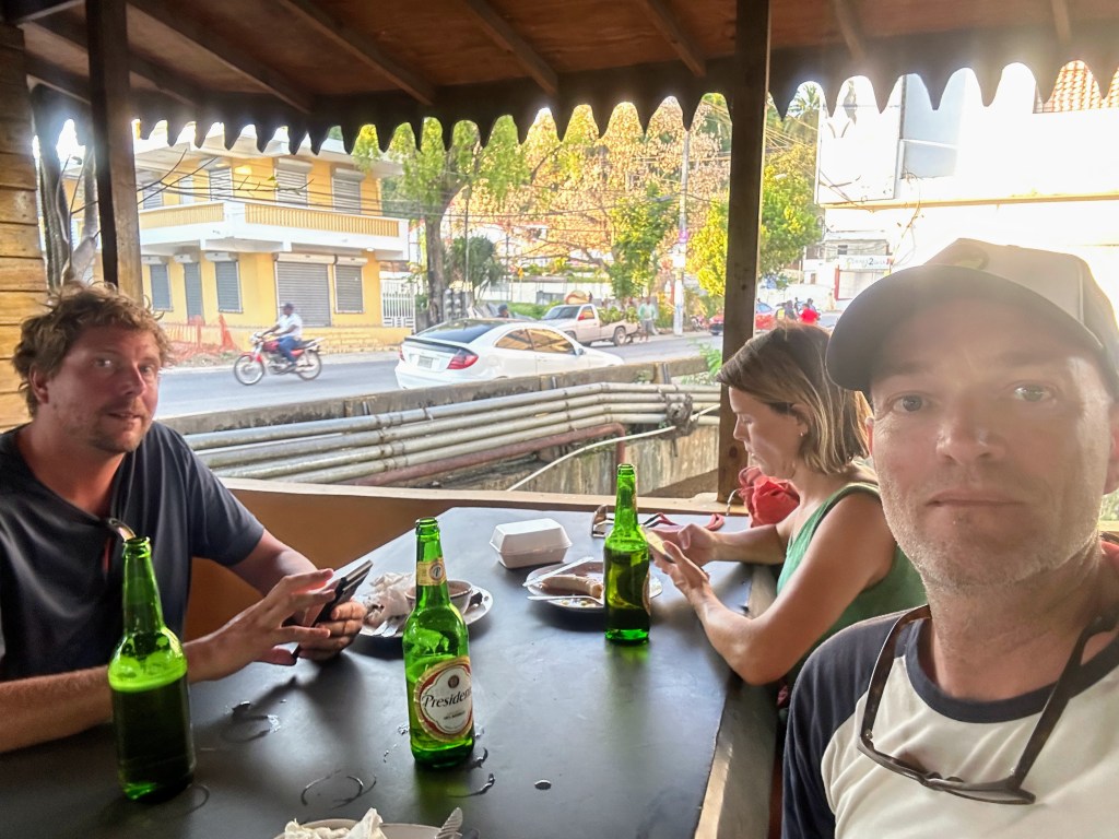 Het was ook zo gaaf om elkaar na bijna twee jaar eindelijk weer in het echt te zien. En dan ook nog met een geweldige reis in het vooruitzicht. Jouke en Pleuni zijn ook nog nooit op de Dominicaanse Republiek geweest. De komende twee weken zullen we dit land met zijn drieën gaan verkennen. Met Jouke zijn gezondheid gaat het ook goed en de achterstand op de klussenlijst van de Olim is inmiddels weggewerkt. We voelen ons de koning te rijk. De stemming zat er dus op de eerste avond meteen al goed in.