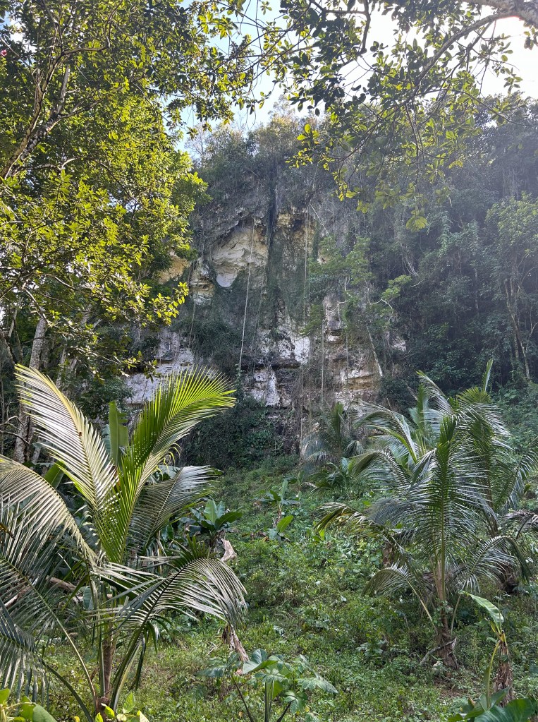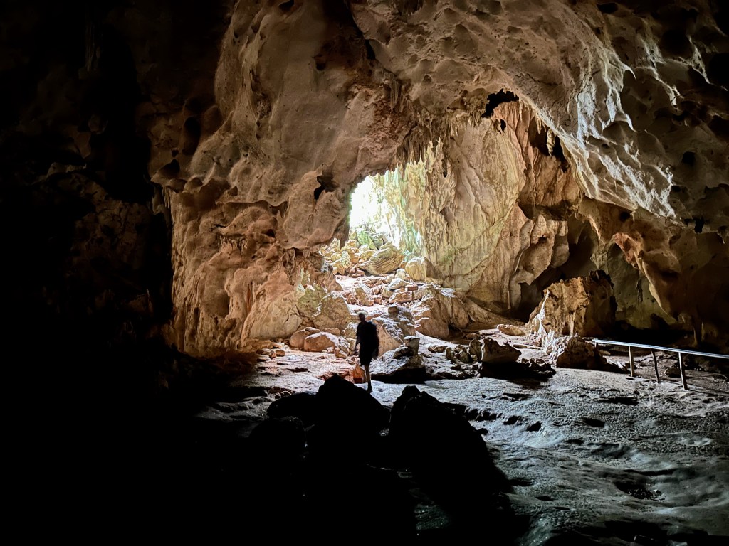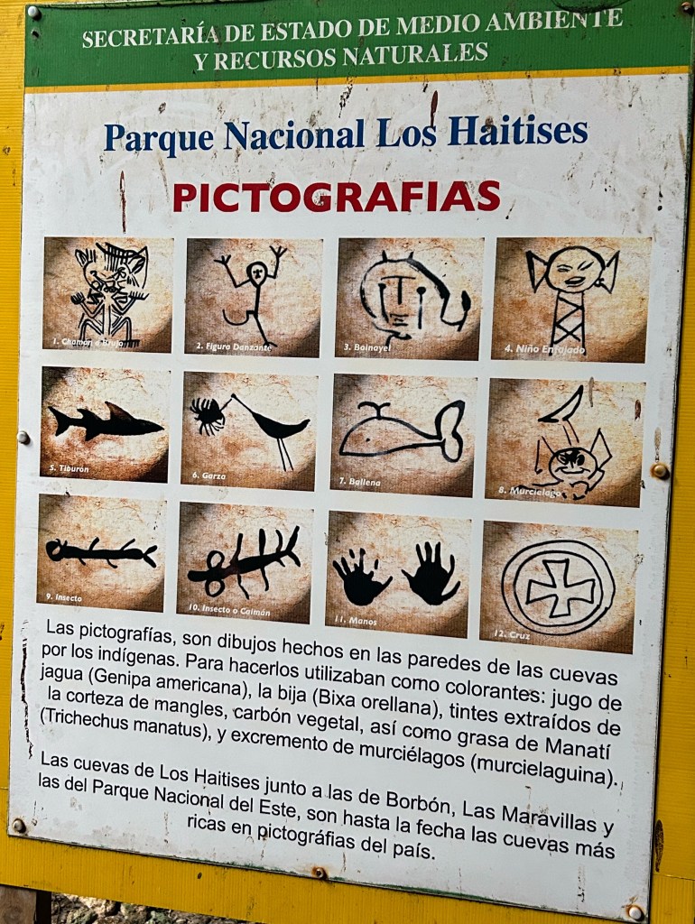 We ontdekken dat hier grotten zijn met rotstekeningen van de Taíno. Dit was het eerste indianenvolk dat Columbus tegenkwam. Helaas is dit volk door de uit Europa meegekomen ziektes uitgestorven.