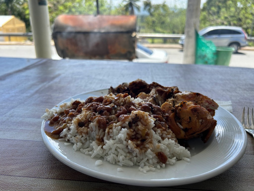Mijn taxi komt op het afgesproken tijdstip. Tijdens de 3 uur durende taxirit naar het vliegveld hebben Ruku en ik hele gesprekken. We stoppen eerst bij het winkeltje van zijn vriendin voor snacks en fruit voor onderweg. Halverwege de rit eten we langs de kant van de weg kip van de barbecue met rijst en zwarte bonensaus. Ruku schiet het eten voor, want dan kost het maar 3,50 EUR per persoon, inclusief drinken. Hij vind het maar niks dat er een ander tarief geldt voor toeristen. Hij vertelt me over zijn leven en over de situatie in zijn land. We gebruiken hiervoor allebei de Google Translate app op onze telefoons, want Ruku’s Engels blijkt net zo slecht als mijn Spaans.