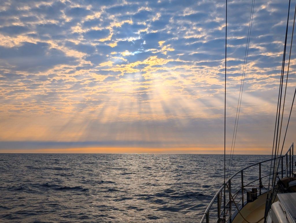 De eerste twee etmalen van de achtdaagse tocht verlopen rommelig, de zee is onrustig en schudt ons continu door elkaar. Ben ik ooit zó zeeziek geweest? Zelfs een slokje water houd ik niet binnen. Waarom hebben we voor dit rotleven gekozen? Waar zijn we mee bezig? Ik wil naar huis! Weg uit deze ellende. En twee dagen later is er niets aan de hand en voel ik me als een kip zo lekker. Een mooiere invulling van mijn leven dan wat we nu doen, kan ik me niet voorstellen.