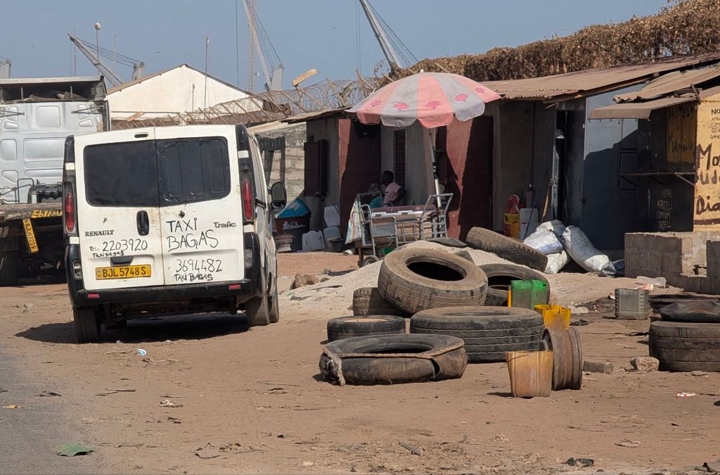 We wisselen onze meegebrachte euro’s naar heel veel dalasi in een krap wisselkantoor waar we even moeten wachten op de koerier. ‘Dit ging ook al zo soepel’, zeggen we opgetogen tegen elkaar als we buiten staan.
