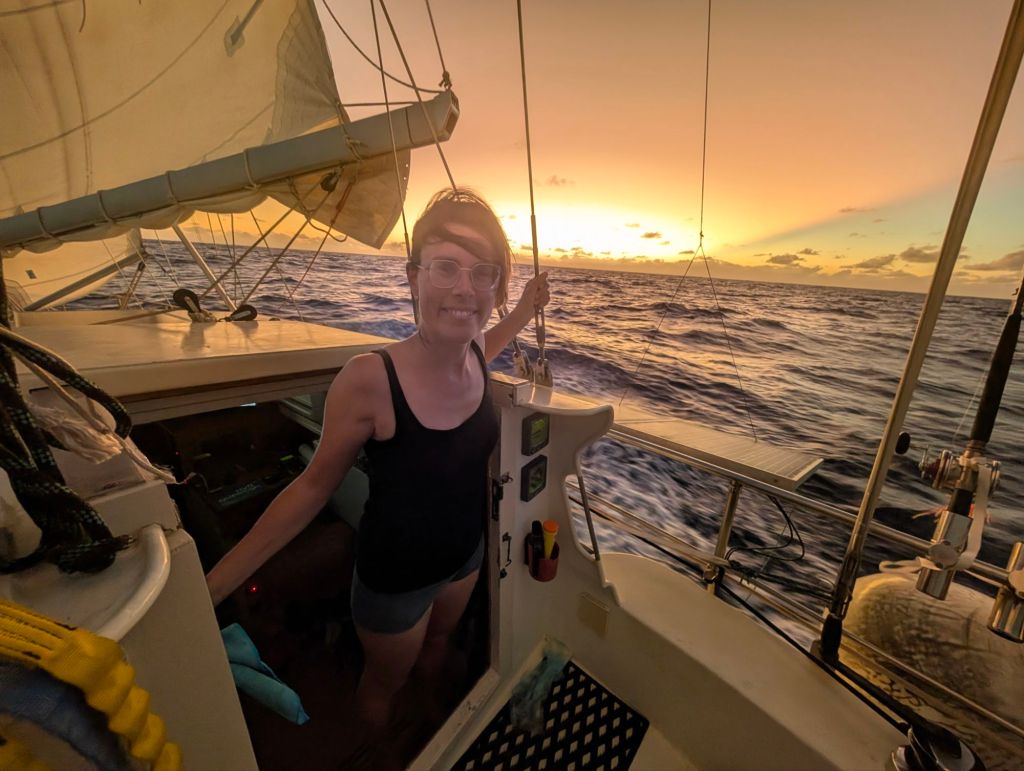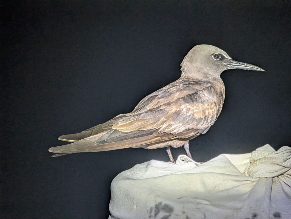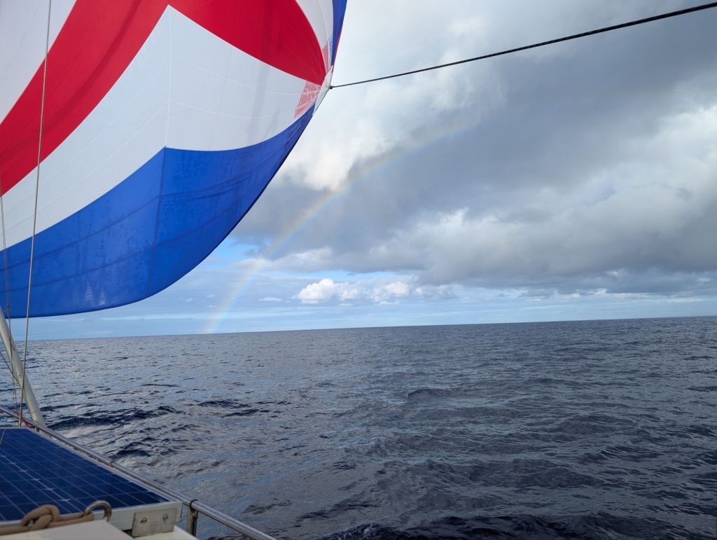 En dan op 22 april is ie er weer: wind! Een bijzondere dag aan boord, want we steken dan de evenaar over! Voor beiden van ons de eerste keer op het zuidelijk halfrond. Je vraagt je vast af of we Neptunus nog geëerd hebben. Ik vermoed dat we de enige zeilboot zijn die deze traditie heeft overgeslagen, ik lag namelijk zo heerlijk te slapen. Desalniettemin hebben we prachtige dagen op zee. We leggen mooie dagafstanden af, Jouke vangt een gigantische merlijn en we krijgen twee nachten op rij bezoek van een twintigtal noddies. De vogels zitten achter elkaar op de bakboordreling te slapen, een prachtig gezicht. Zodra de zon opkomt, vliegen ze een voor een weg. Een dek vol vogelpoep achterlatend. ’s Avonds komen ze weer terug en zoeken ze hun plekje op.