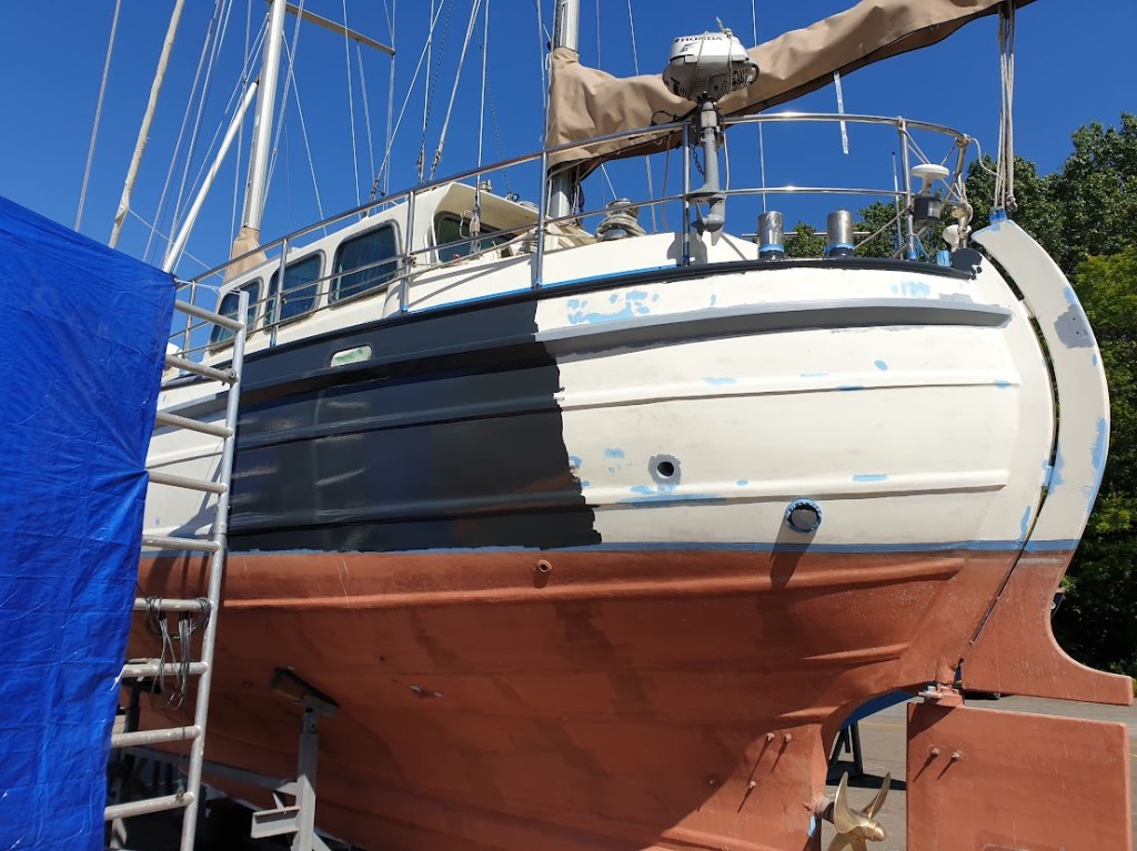 Onze nieuwe Aries windvaan in actie. Met dank aan Lean! https://ariesvanegear.com/Naam erop en nieuw rvs ankerbeslagOoit was Olim wit met rode accenten. Zwart met beige huiken staat beter vinden we.Nieuw gerestaureerde ramen, wat een verschil!Mock up ankerbeslag (en anker) in houtWe zijn blij met het werk van Francois, Olim krijgt deels een nieuw interieur. Pikant detail, Francoise bezwoer na deze klus nooit meer een boot in te timmeren! Nieuwe zithoek benedenHet dekhuis hebben we zo gelaten